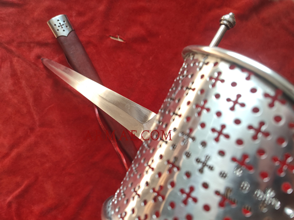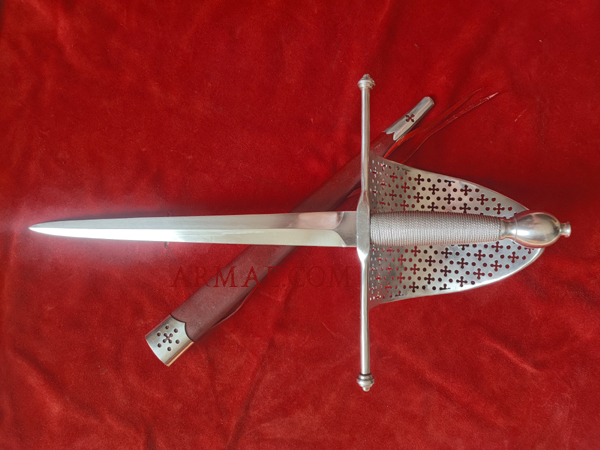 La main gauche allait de paire avec la rapière maniée de la main droite. Elle servait à parer les coups d'épée de l'adversaire, et à asséner des coups d'estoc mortels dans le corps à corps. A défaut, les escrimeurs enroulaient leur manteau autour du bras gauche pour parer la lame adverse. Les mains gauches ont pris au fil du temps des formes diverses, qui copiaient généralement la poignée de la rapière associée. Bien qu'elle diffère sur ce point des rapières "à la Taza" (en forme de coupe), la garde plus largement ouverte de cette dague garde cette désignation de "Taza". Celle-ci est somptueusement ajourée, ce qui permettait aussi de bloquer l'extrémité de la lame de l'ennemi, le privant d'une fraction de seconde qui pouvait lui être fatale.