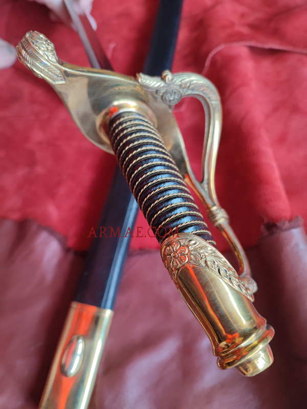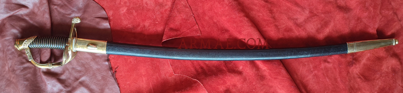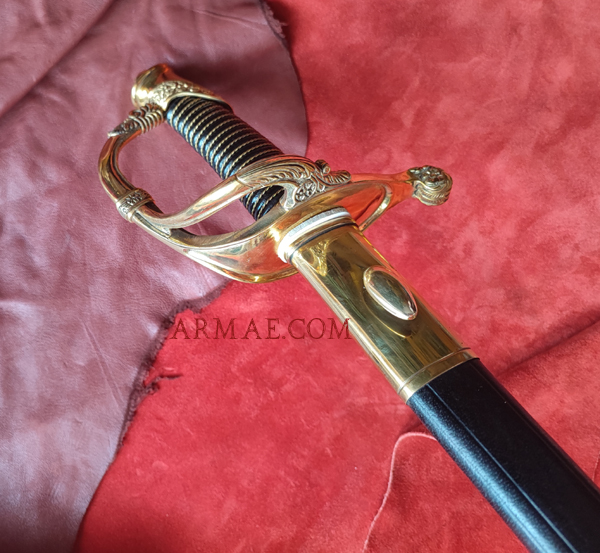 Cette reproduction est celle d'un sabre d’officier d’infanterie russe modèle 1826.Il était utilisé par les officiers des régiments de grenadiers et du génie durant la première moitié du XIX? siècle. La garde est finement coulée et décorée en laiton poli. La poignée est en bois, recouverte de cuir et entourée d’un filigrane de laiton torsadé.
