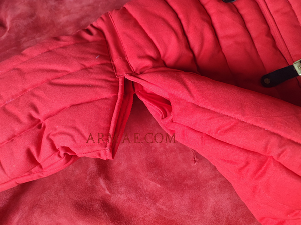 This gambeson is extremely traditional, except for its color, which dates it more to the late Middle Ages. It is a unique piece and will not be mass-produced.