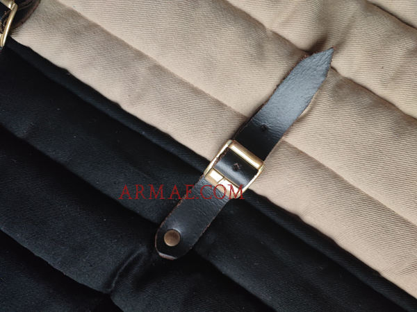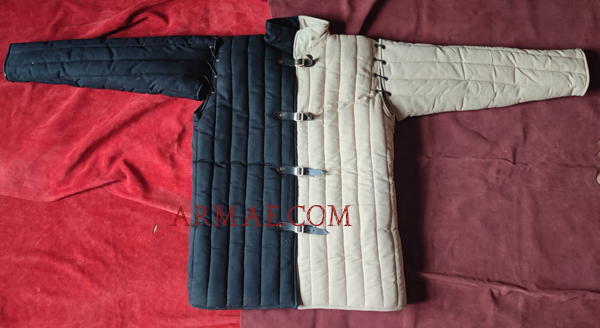 Hauteur du gambison 80cm, largeur 55cm (tour de poitrine de 105/110). Toile de coton avec une garniture polyester.