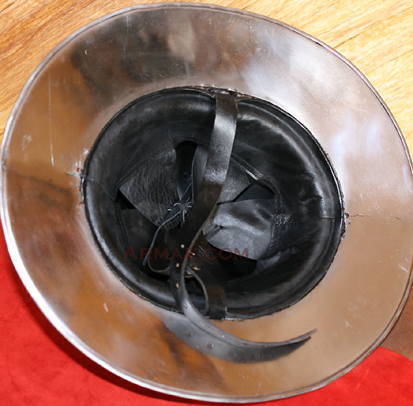 Ce casque n'est autre qu'une cervelière sur laquelle des bords ont été rapportés pour protéger le visage et les épaules des coups de taille. C'est un casque apprécié des mineurs et des sapeurs pour se garantir des projectiles venant des murailles, ainsi que des archers car ne masquant pas leur champ de vision.