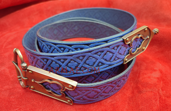 Cuir de couleur bleue. 140cm. Les trous sont à percer à votre taille.
