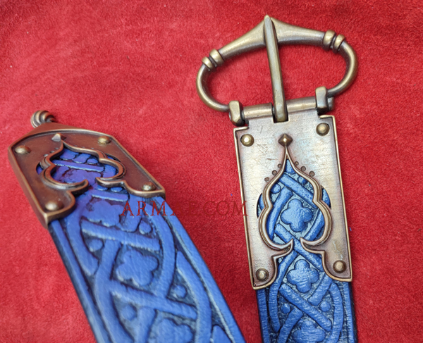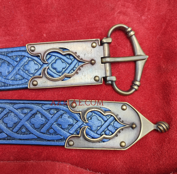 La ceinture a toujours été un accessoire de mode important, car il permettait d’embellir une silhouette, féminine ou masculine, mais aussi et surtout d’indiquer la richesse, voire le rang du propriétaire. Les ceintures du XVe siècle en cuir repoussé sont d’une grande élégance, rehaussées de boucles en laiton très finement ouvragées.