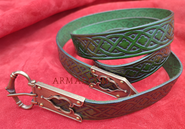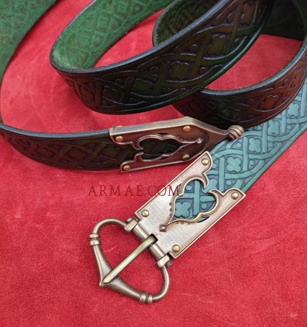 La ceinture a toujours été un accessoire de mode important, car il permettait d’embellir une silhouette, féminine ou masculine, mais aussi et surtout d’indiquer la richesse, voire le rang du propriétaire. Les ceintures du XVe siècle en cuir repoussé sont d’une grande élégance, rehaussées de boucles en laiton très finement ouvragées.