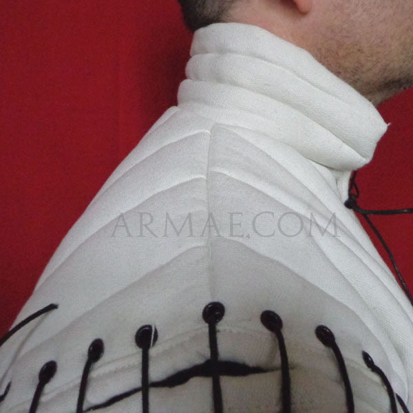 Weight 1.3kg, thickness 1cm. Our copy is a good compromise between weight and comfort, and is intended for re-enactors purposes.