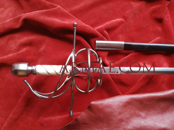 This basket hilt rapier is a typical one, with a very intricate pattern. It gives a very good protection against cutting blows but is far less effective against thrusting ones.
