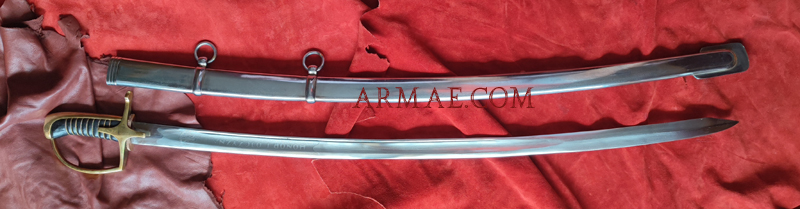 This reproduction of a 1921 / 1922 Pattern Polish Military Officer’s Saber recreates the details and even the manufacturer and armory markings of an original one. The blade bears the reproduced stamped signature of the manufacturer A. MANN, WARSZAWA, AMA. The back of the blade has the stamp of the munitions inspector, the national eagle. The blade is engreaved with the motto "Honor - Fatherlandland" in polish. The hilt is polished cast brass. The wooden grip is bound in black leather and in braided brass. 3000 of these sabers were made, our reproduction is made after number 1152.
